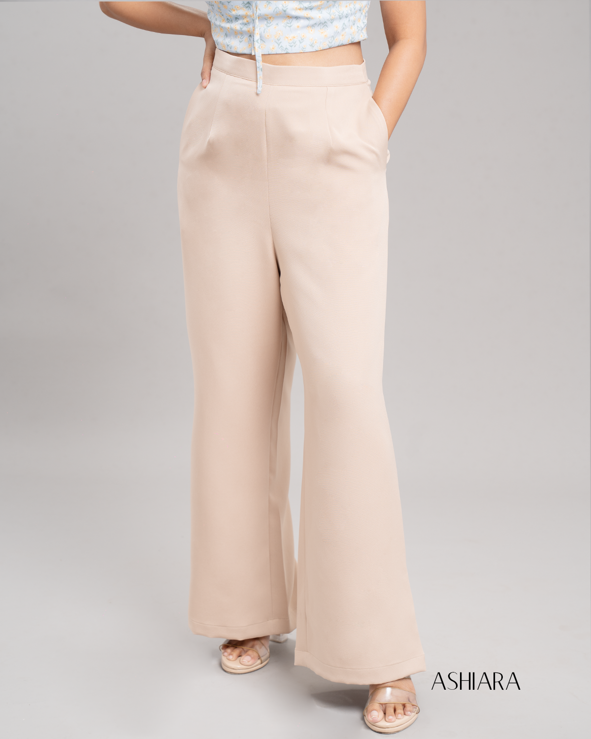 Lina wide leg pant in Beige feature a flattering high-rise fit with a gentle flare for timeless style and all-day comfort. A side zipper ensures easy dressing and a perfect fit. Their neutral beige color makes them versatile for both work and evening wear.