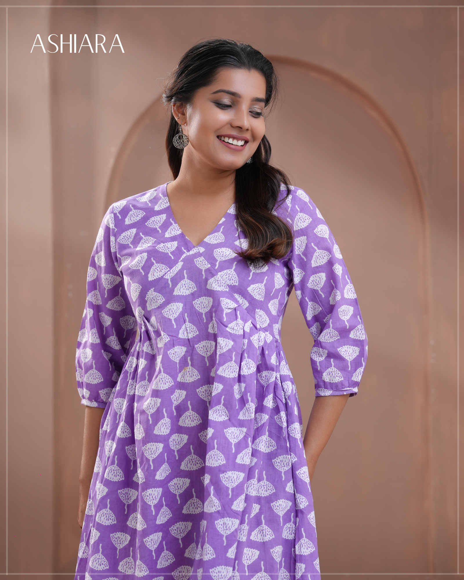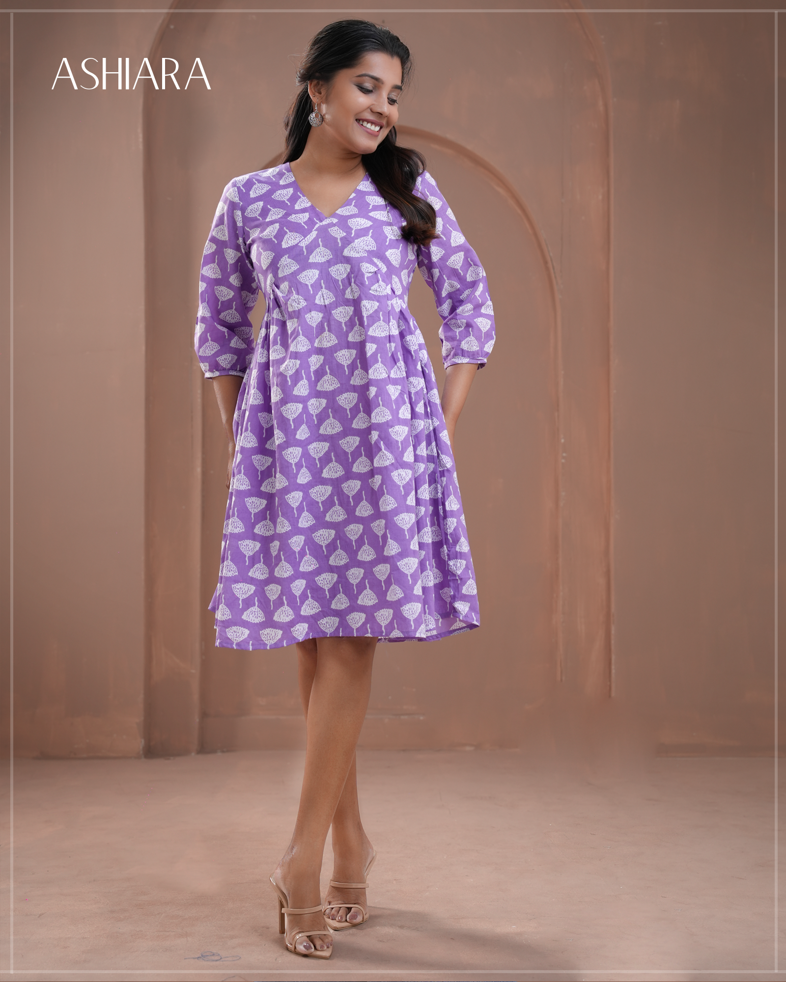 The Kaya Mini Dress features a flattering V-neck and gathered chest design, crafted from breathable Indian cotton for all-day comfort. Its long sleeves and covered back offer modesty, making it perfect for both casual outings and office wear. This dress combines style and practicality in a beautiful shape that suits various occasions.