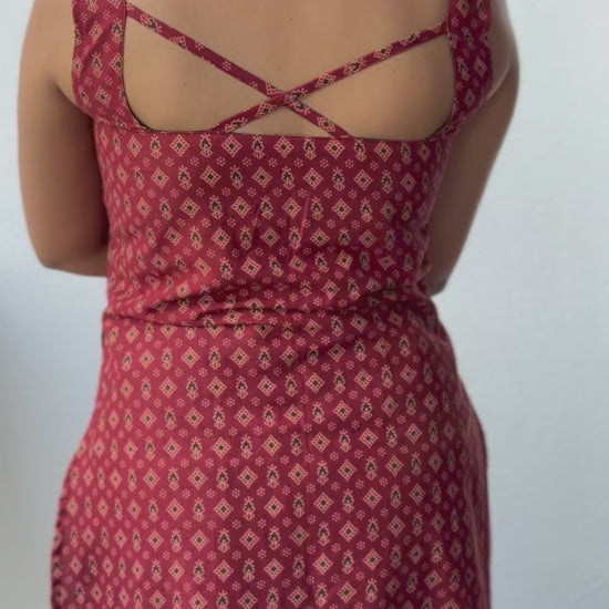 Its square neckline and stylish strappy cross back create a flattering look, while side slits allow for easy movement.