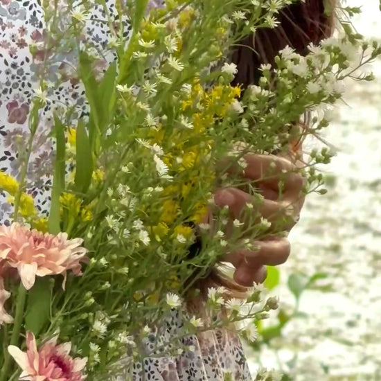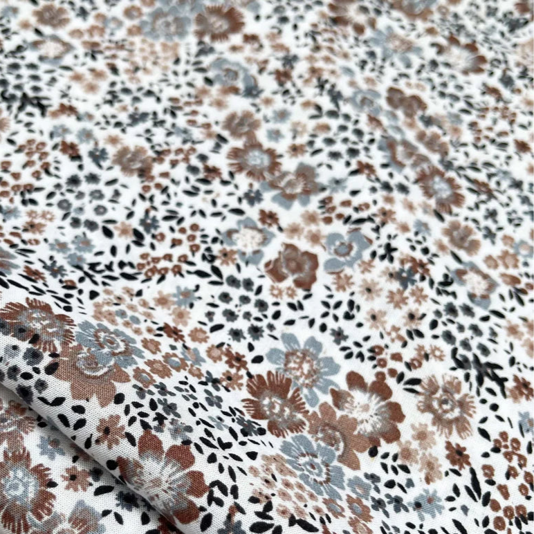 The Mira Maxi Dress is made from soft, breathable eco-rayon fabric, offering comfort and versatility. It features a square neckline, full inner lining, a beautiful brown floral print, and a flared skirt that flows to maxi length. Subtle fluffy sleeves add a delicate touch, while a back zipper ensures easy wear. Perfect for elegant casual occasions.