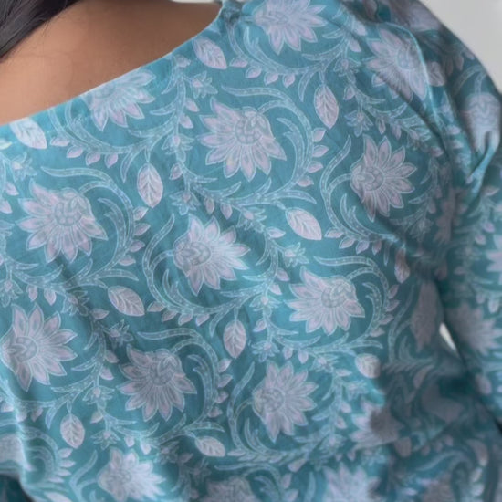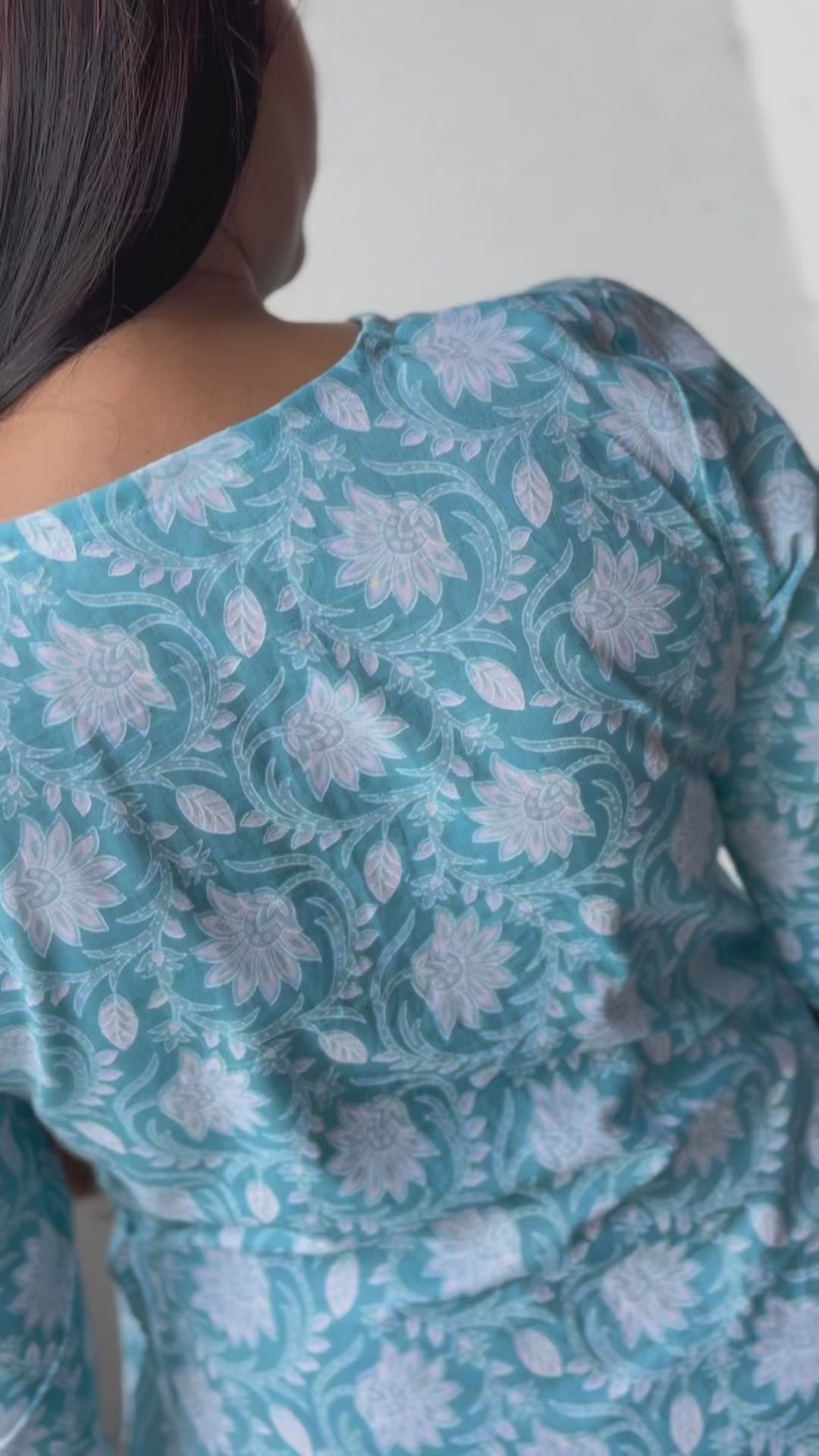 The Zaara Kurti in Blue Floral features a fresh, vibrant print perfect for everyday wear.